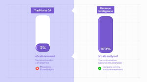 Traditional QA reviews 1 – 3% of calls manually. Revenue intelligence analyzes 100% using AI – identifying the specific moments where deals are won and lost, and giving reps a way to practice before they’re live.