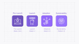 Sustainability (Months 4–12). This becomes how you work, not the new initiative. Tie platform engagement to development and promotion criteria. Introduce advanced features in waves.