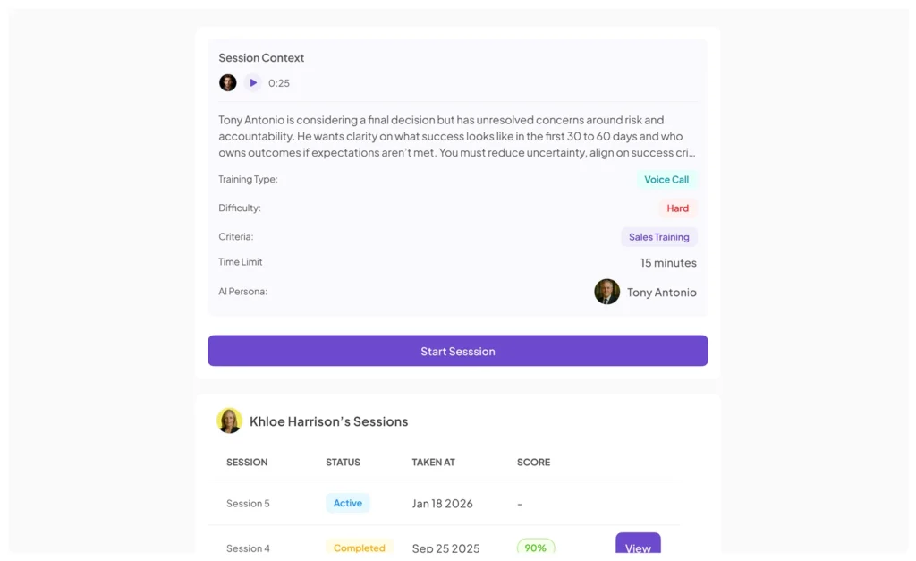 Whether training 5 or 5,000 people, use structured roleplay and scenario-based learning to strengthen onboarding, coaching, and performance development.