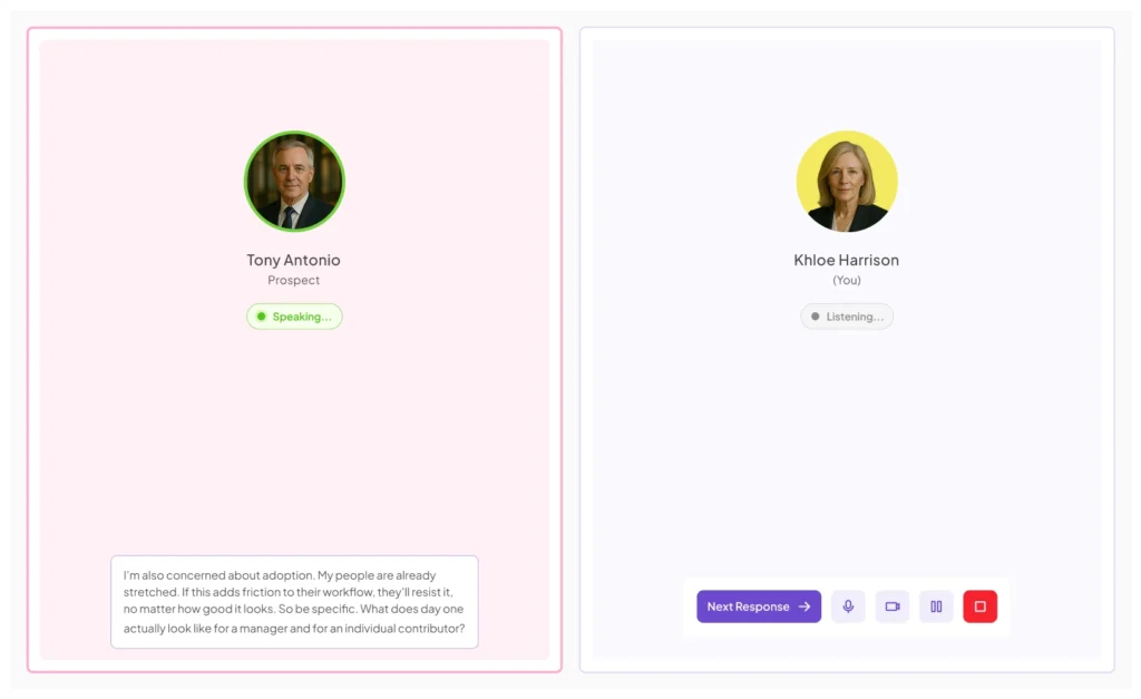 Engage in realistic AI roleplay simulating customers, prospects, or team members.