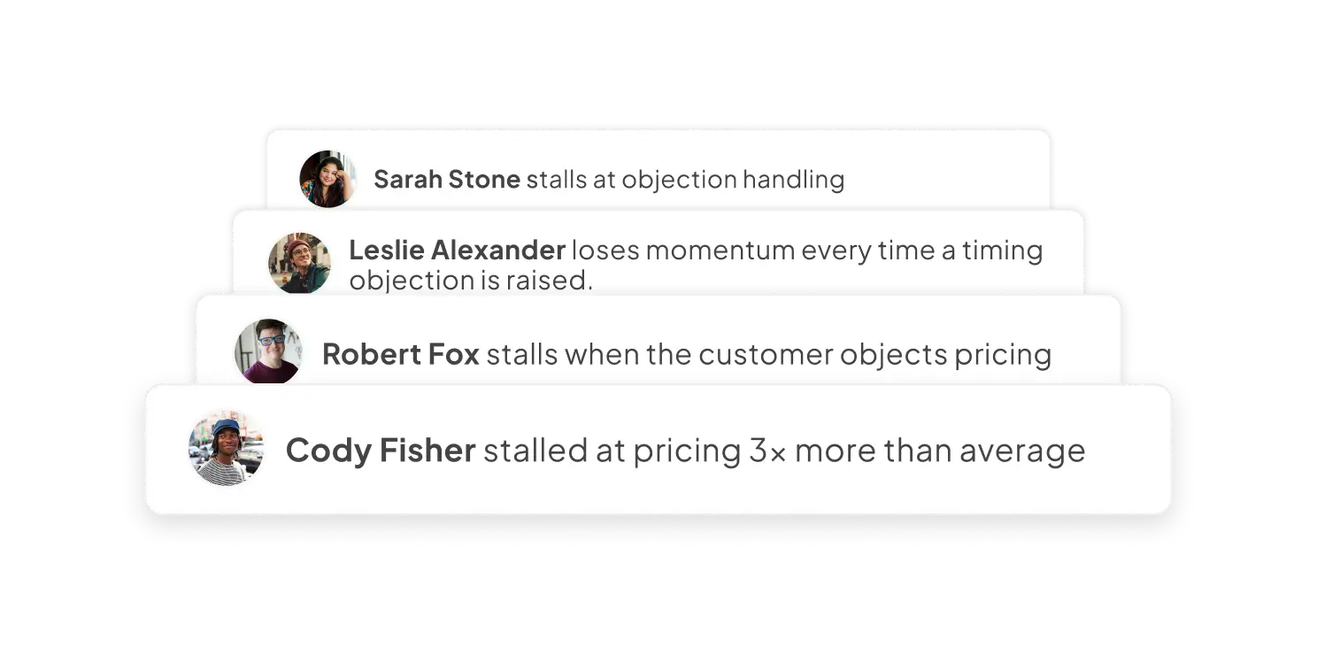 Analyze how top performers discover needs, handle objections, and close deals. Turn winning behaviors into coaching for the rest of the team.
